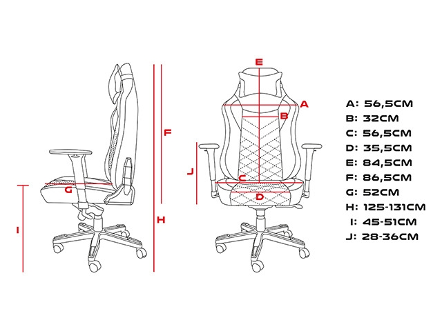 | Височина на облегалката | 84.5 cm; Backrest width: 56.5 cm |