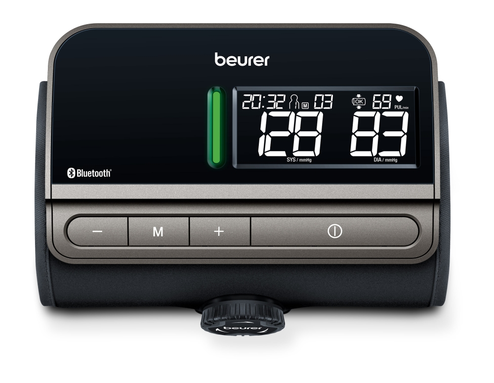 Blood pressure monitor, Beurer BM 81, blood pressure monitor easyLock; Bluetooth, Inflation technology, no hoses, no cables, Innovative easyLock cuff (24-40 cm), XL display, 2 x 70 memory spaces, risk indicator, arrhythmia detection, storage bag