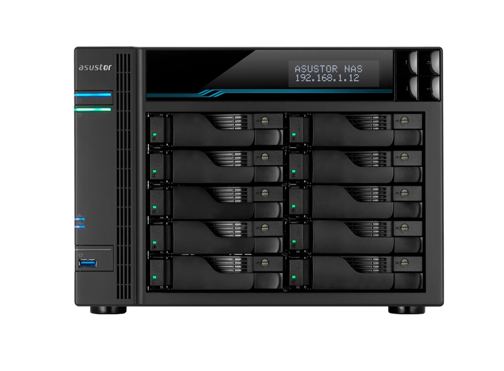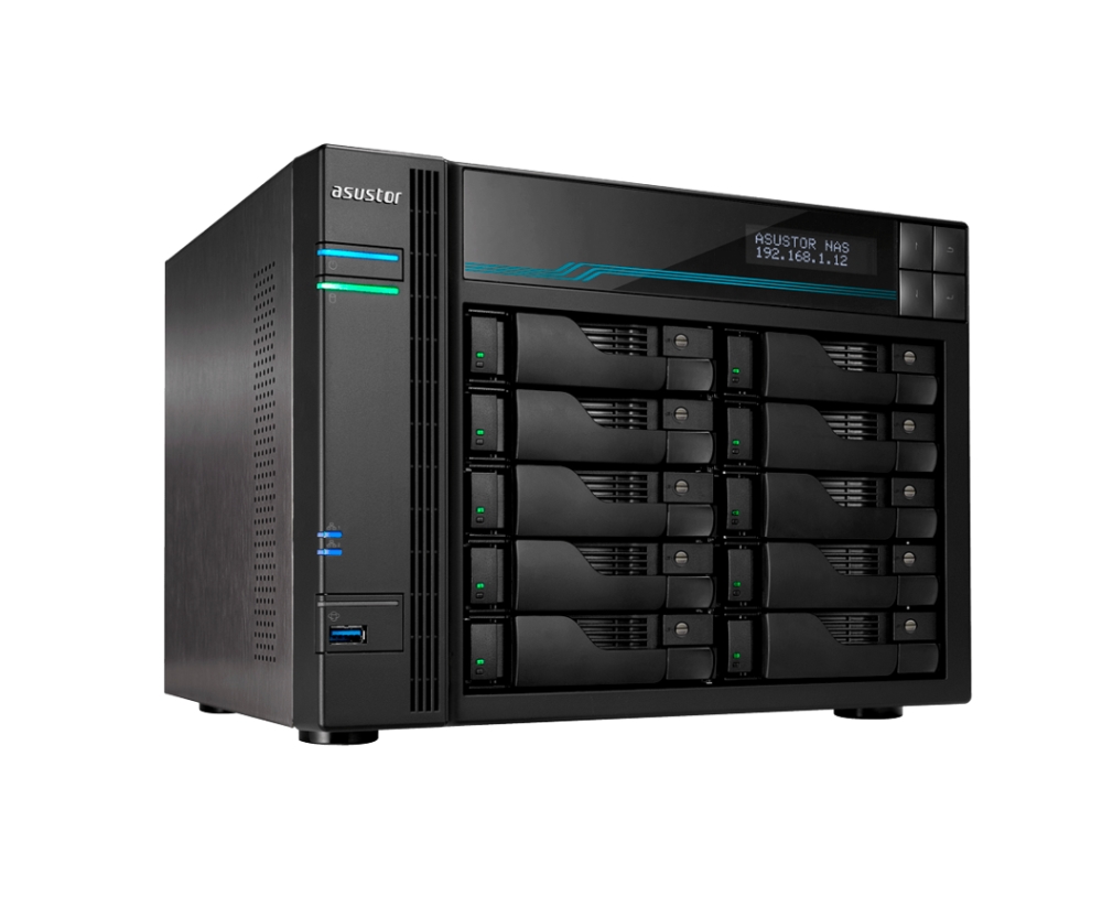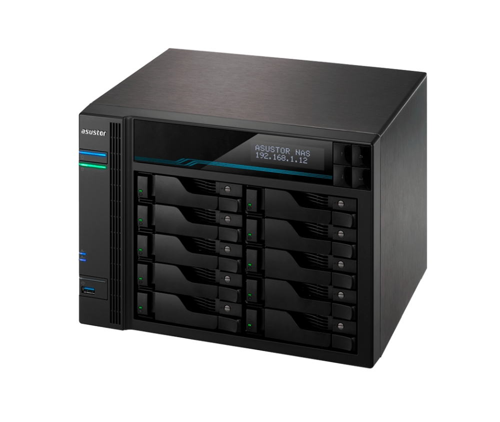 Мрежов сторидж, Asustor Lockerstore 10 AS6510T, 10-Bay NAS, Intel ATOM C3538 Quad-Core( Denverton 2.1GHz), 8GB DDR4 (Max 32 GB) , 10 GbE x 2, 2.5 GbE x 2, USB 3.2 Gen-1 x 2, 10 x 2.5” / 3.5” SATA or SSD, 2 x M.2PCIe (NvMe) or SATA SSD, with lockable tray, AES-NI hardwar