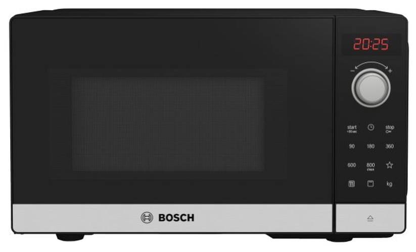 Микровълнова печка, Bosch FEL023MS2, SER2, Freestanding microwave, 800 W, 20 l, Number of power levels 5, 27 cm glass rotating plate, AutoPilot 8, Grill function, Stainless steel