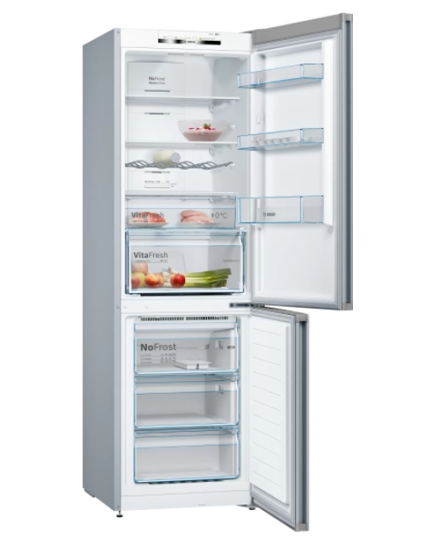Хладилник, Bosch KGN36VLED, SER4, FS fridge-freezer NoFrost, E, 186/60/66cm, 326l(237+89), 39dB(C), VitaFresh, Inox-look