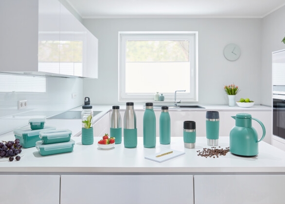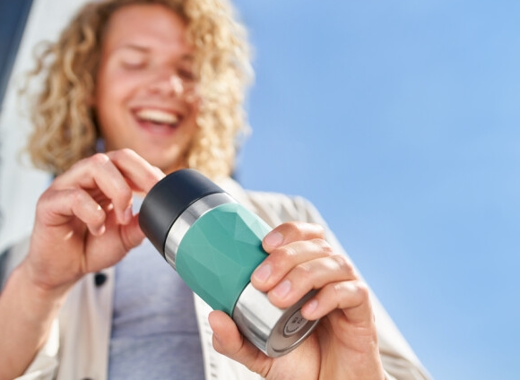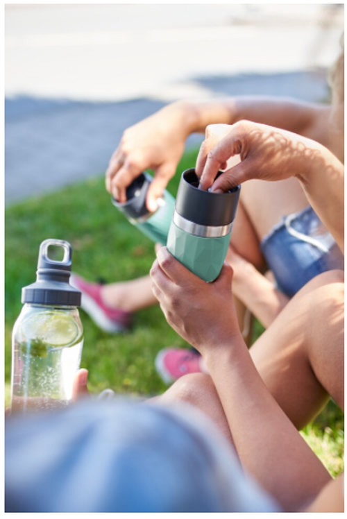 | Other | With double-walled stainless-steel liner; Opens with the press of a button; 360° drinking from all sides; 100% leak-proof; Dishwasher safe; Closure can be taken apart for easy cleaning |