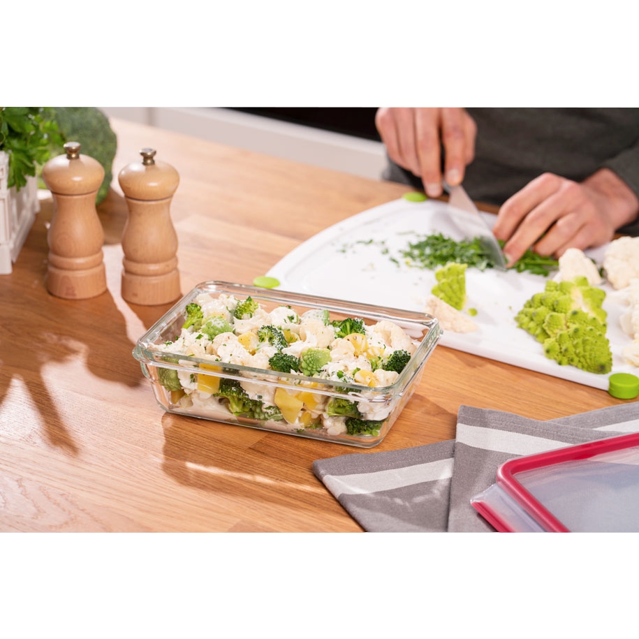 | Перфектното решение за всяка ситуация. Във фурната или микровълновата печка, на масата, в хладилника или фризера, стъклените контейнери за съхранение на храна MasterSeal са идеалното решение за всяка ситуация. С подсилен ръб и подобрен дизайн те предлагат компактно съхранениe и мултифункционална употреба. От подготовката и готвенето до сервирането, замразяването и претоплянето, стъклените кутии за съхранение на храна Tefal MasterSeal правят всичко. Перфектното решение за всяка ситуация, тези удобни стъклени контейнери се отличават с подобрен дизайн и специален подсилен ръб, осигуряващ безпроблемно съхранение и подредба един над друг. Устойчиви на температура до 420 ° C, както и на ниски температури, те са безопасни за употреба във фурна и фризер и съвместими с измиване в съдомиална машина. Всичко това е допълнено от специланата Clip & Close технология на капака, която осигурява сигурно затваряне без опсност от протичане! |