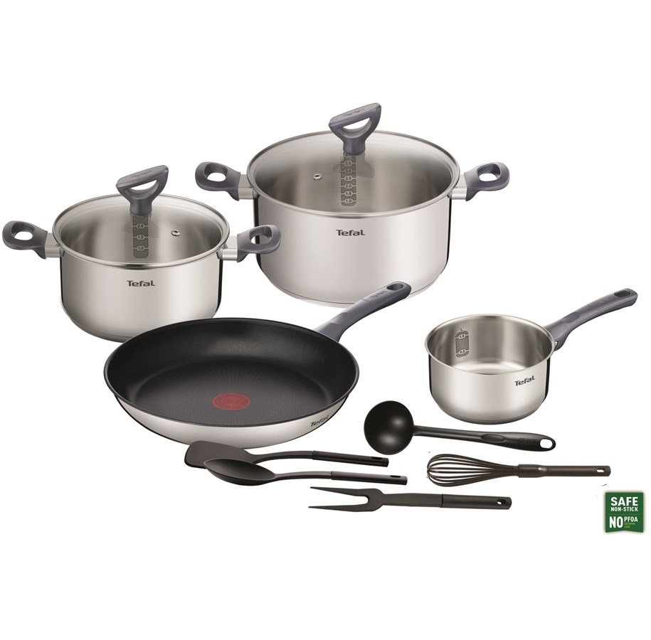 Комплект тигани и тенджери, Tefal G713SB45, DAILY COOK Set 11 pcs (Saucepan 16 w/o lid, stewpot 20/24+lids, frypan 28, 5 tools)