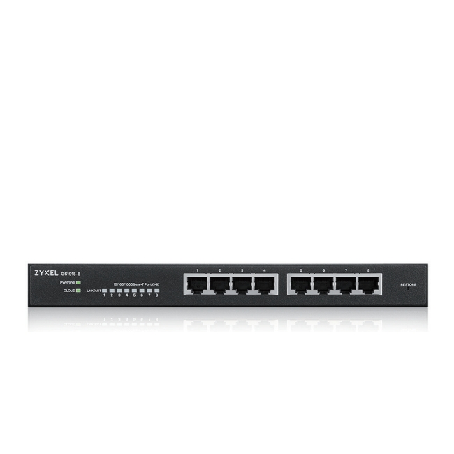 Комутатор, ZyXEL GS1915-8, 8-port GbE Smart hybrid mode Switch, standalone or NebulaFlex Cloud, desktop, fanless