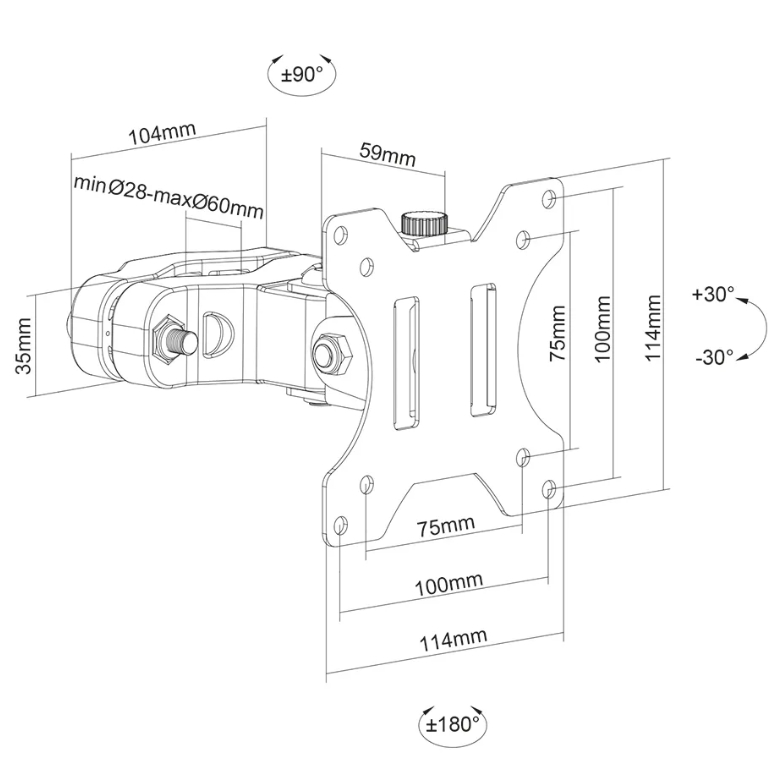 Стойка, Neomounts Screen Pole Clamp/Truss Mount 1 pivot VESA 100x100 (pole diameter 28-60 mm)