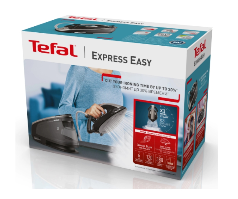 Steam station, Tefal SV6140E0, Express Easy, black, 2200W, non boiler, heat up 2min, manual setting, pump 6bars, shot 120g/min, steam boost 380g/min, Ceramic Express Gliding soleplate, removable water tank 1,7L, auto off, eco, lock system, Calc Clear tech (no cartdrige