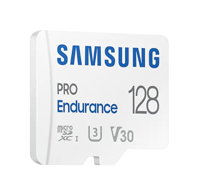 Memory, Samsung 128 GB micro SD PRO Endurance, Adapter, Class10, Waterproof, Magnet-proof, Temperature-proof, X-ray-proof, Read 100 MB/s - Write 40 MB/s