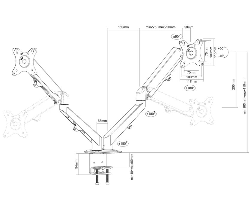 NEOMOUNTS BY NEWSTAR стойки >> Neomounts Gas Spring Mount (clamp/grommet) for 2 Monitor Screens