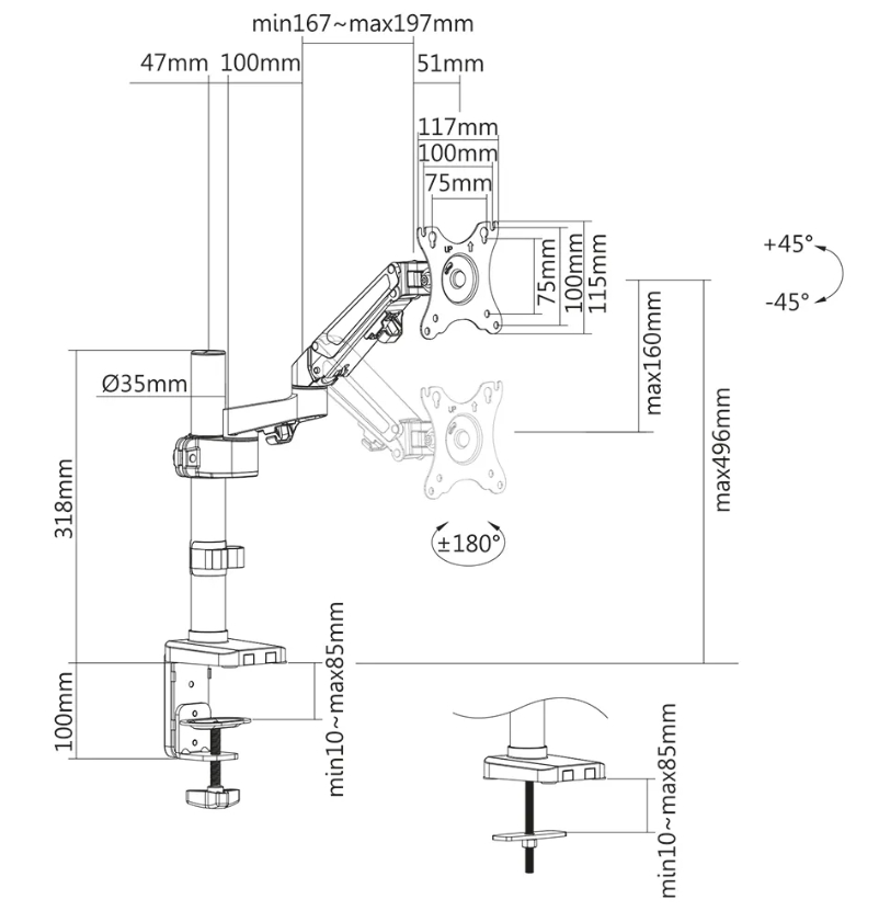 | Max VESA размер, mm | 75x75 - 100x100 |