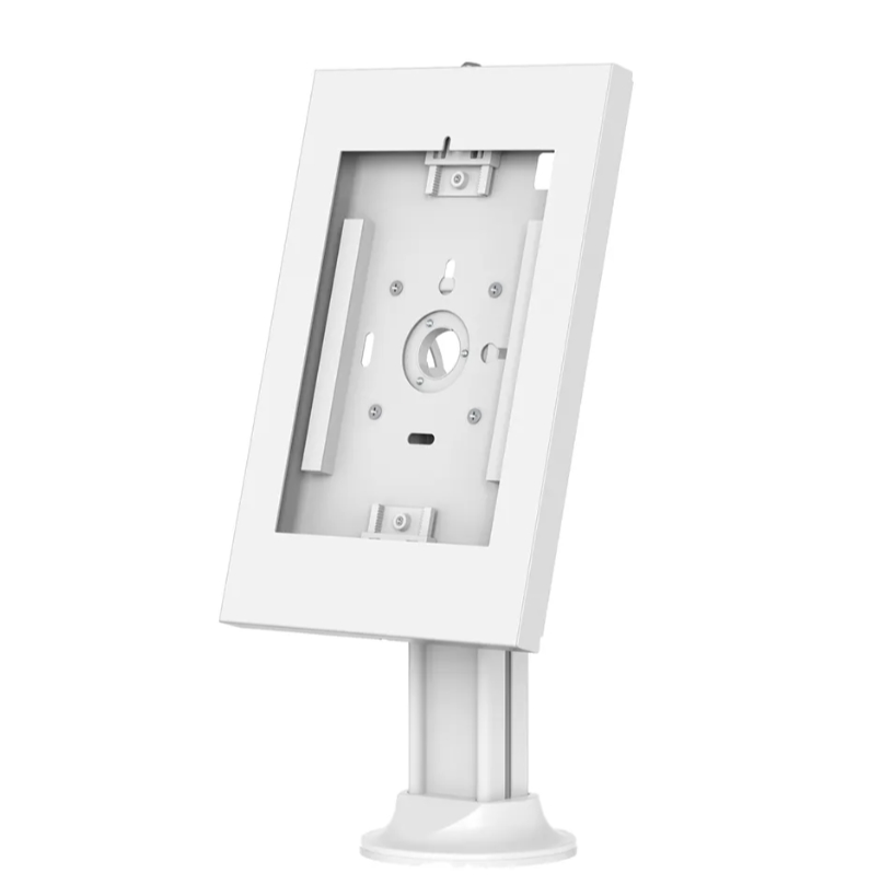 | DS15-640WH1 e настолна стойка за таблет, която може да се върти на 90°, което ви позволява да гледате екрана на устройството си във водоравно или хоризонтално положение. Освен това стойката може да се накланя на 75°. Интелигентният дизайн включва шест различни панела с вложки за таблет, което прави държача за таблет съвместим с повечето 9,7-11 инчови таблети, включително iPad Pro gen 1-5, iPad Air 1-4, iPad 5-9, Samsung Galaxy Tab A, Tab A7 и Tab S6. Поставката за таблет разполага със заключване против кражба и основа, която може да бъде фиксирана за допълнителна сигурност. Подложките против плъзгане предпазват таблета от всякакви драскотини, а стоманената конструкция осигурява безопасно и стабилно поставяне. Системата за управление на кабелите позволява кабелите да бъдат прекарани през корпуса. |