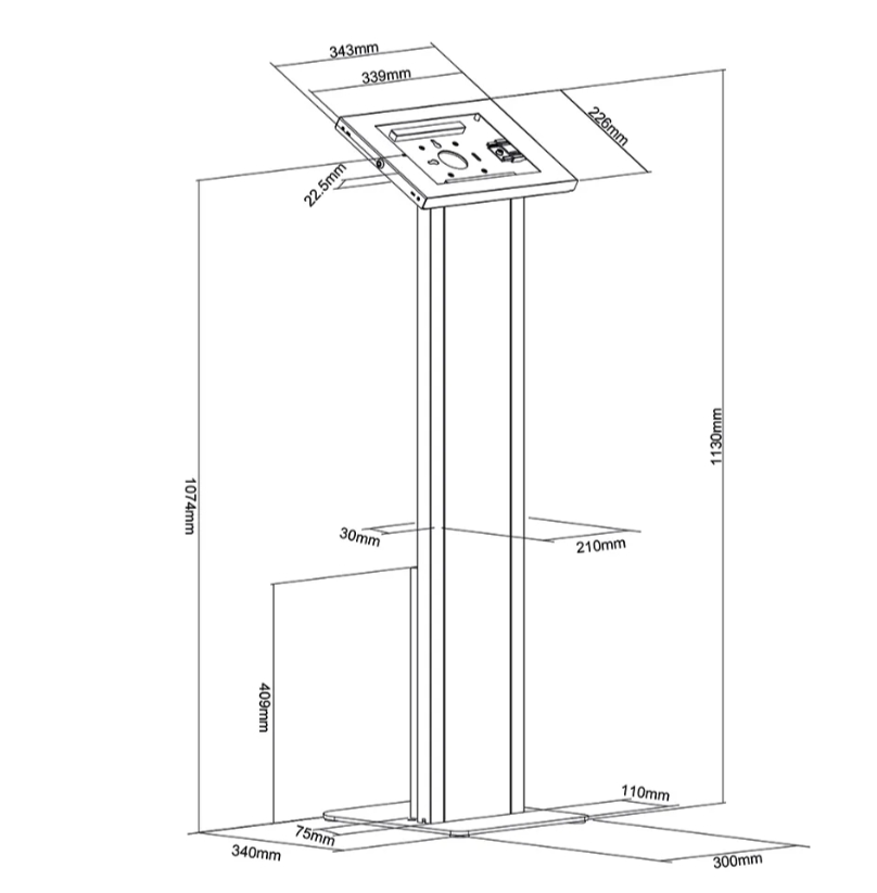 | Други | VESA 75x75 mm - Tablet floor stand that can be installed both in portrait and landscape orientation; Anti-theft lock; Dimensions: 34.3 x 34 x 113 cm; Anti-skid pads protect the tablet from any scratches; Cable management system |