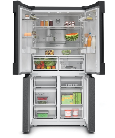 Хладилник, Bosch KFN96AXEA, SER6, Multi-door fridge-freezer, NoFrost, E, 183/91/73, 605 l (405+200), 38d B(C), VitaFresh XXL <0°C>, Home Connect, Black stainless steel