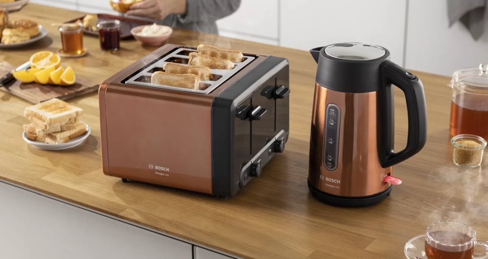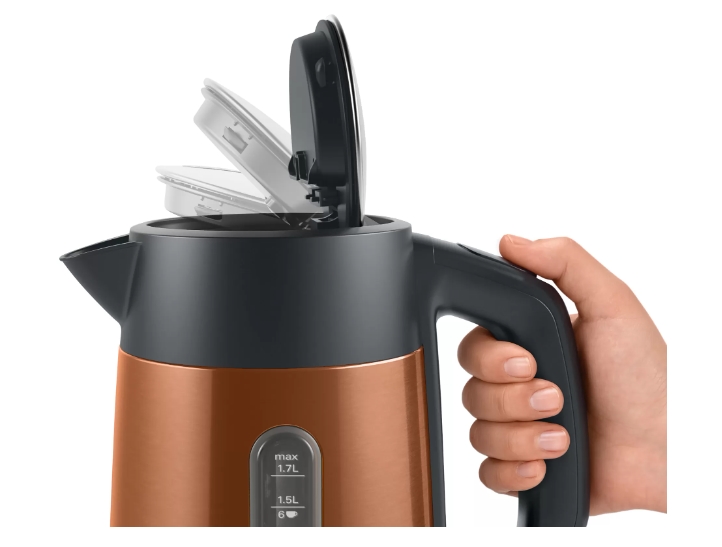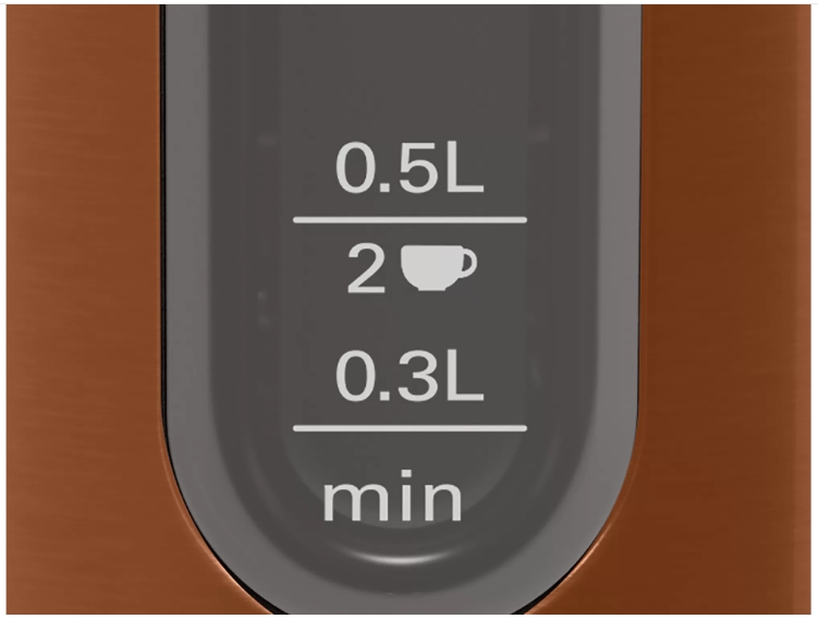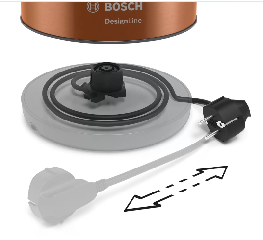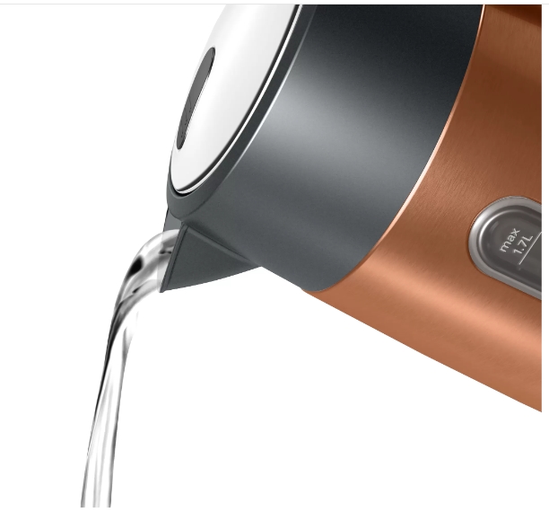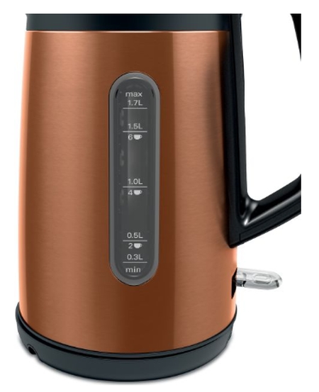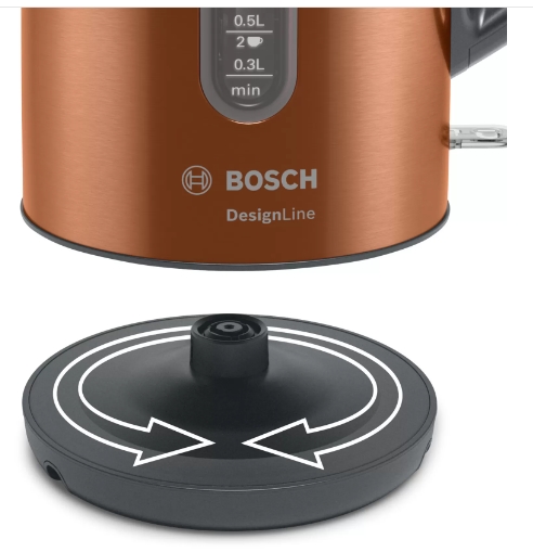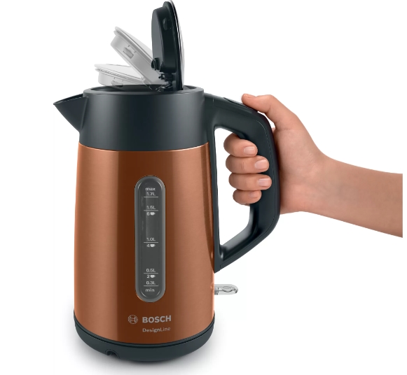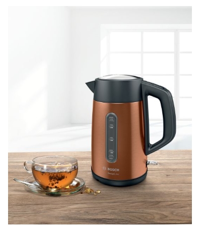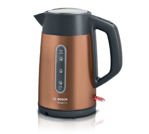 Електрическа кана, Bosch TWK4P439, Kettle, DesignLine, 2000-2400 W, 1.7 l, OneCup function, Copper