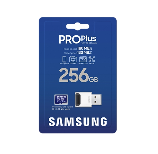 SAMSUNG памети, SSD и аксесоари >> Samsung 256GB micro SD Card PRO Plus with USB Reader