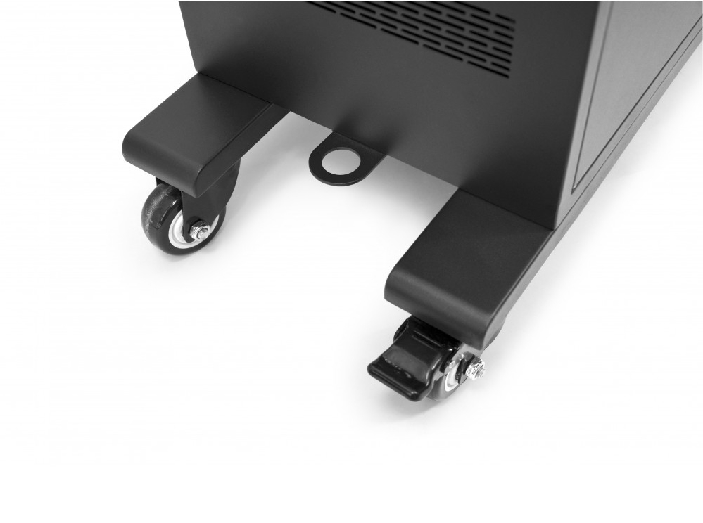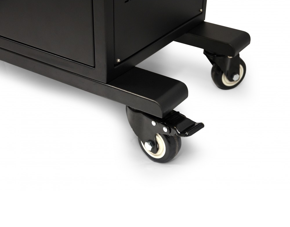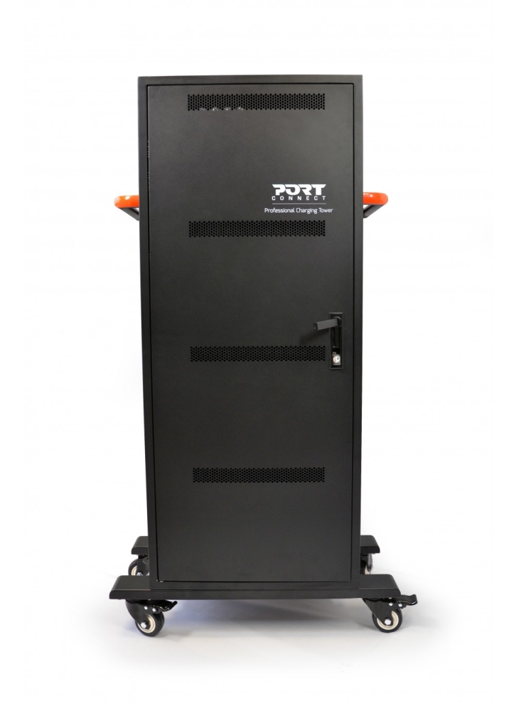 | Тази страхотна зарядна станция от Port разполага с 40 отделни отделения за зареждане на таблети. Тя зарежда, безопасно съхранява и управлява захранващи кабели на до 40 таблета, мобилни телефони и други USB устройства. Тази зарядна станция се препоръчва за употреба в сферата на образованието, както и в търговските и офисни среди. Ергономичните странични дръжки на този шкаф за зареждане ще ви помогнат да го насочвате с лекота, когато го местите. Изключително тихите вентилатори извеждат натрупаната топлина, която се отделя от различните устройства, които се зареждат. По този начин може да бъдете сигурни, че вашите устройства няма да прегреят и че ще бъдат напълно изправни дълго време. Металният корпус на зарядната станция ви гарантира отлична защита на устройствата в нея и ви гарантира продължителна и безопасна употреба в продължение на години. Сигурността на вашите устройства е гарантирана, благодарение на ключалката с 3 точки на заключване. Заключването се осъществява чрез предоставените със станцията ключове, за да се предотврати кражба, повреда или неправомерна промяна на устройството. Системата с плъзгащи се чекмеджета ще ви позволи лесен достъп до устройствата. Разнопосочните колела със спирачки ще ви позволят лесно да местите този шкаф, който тежи почти 54,6 кг, когато е празен. |