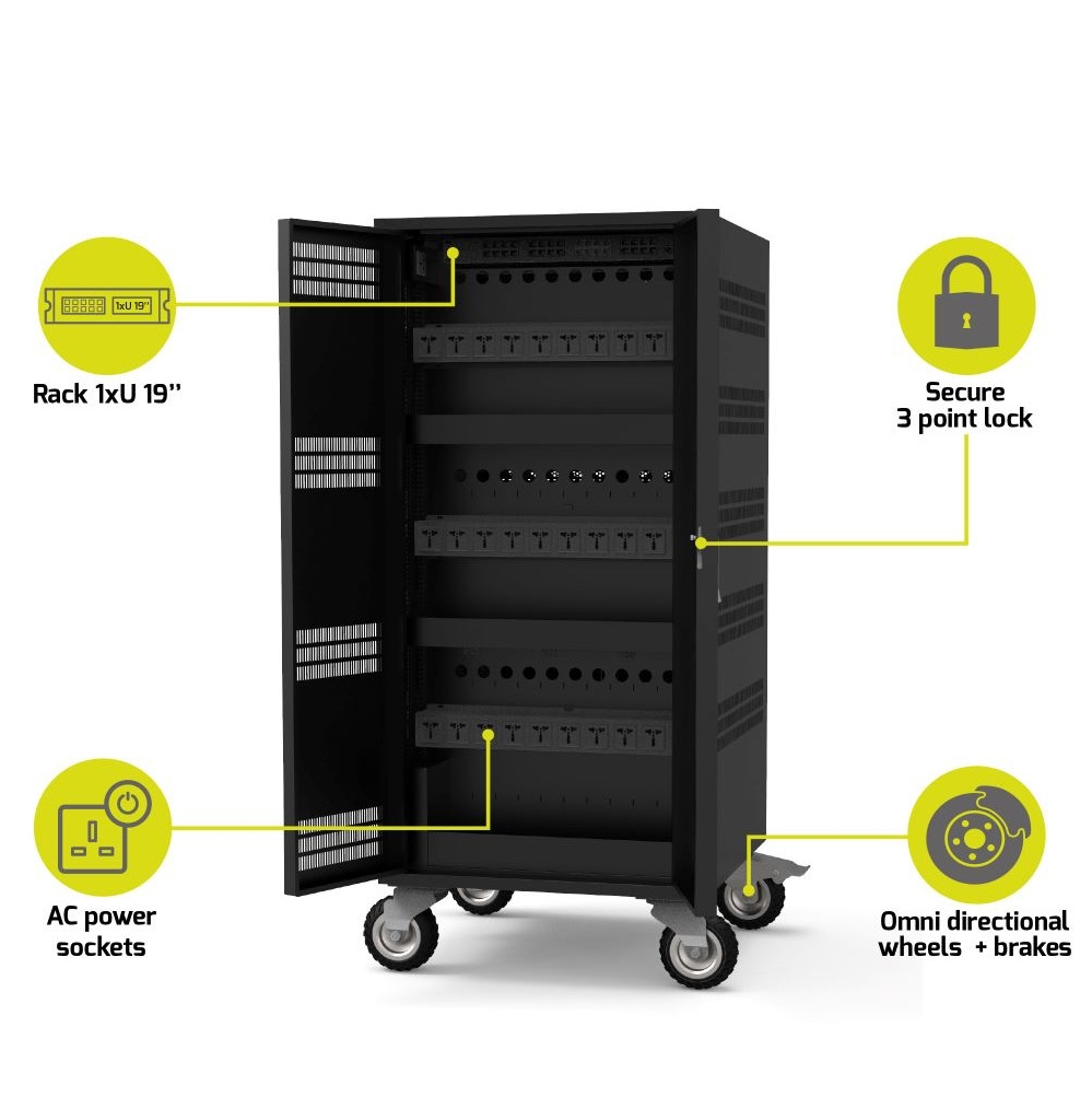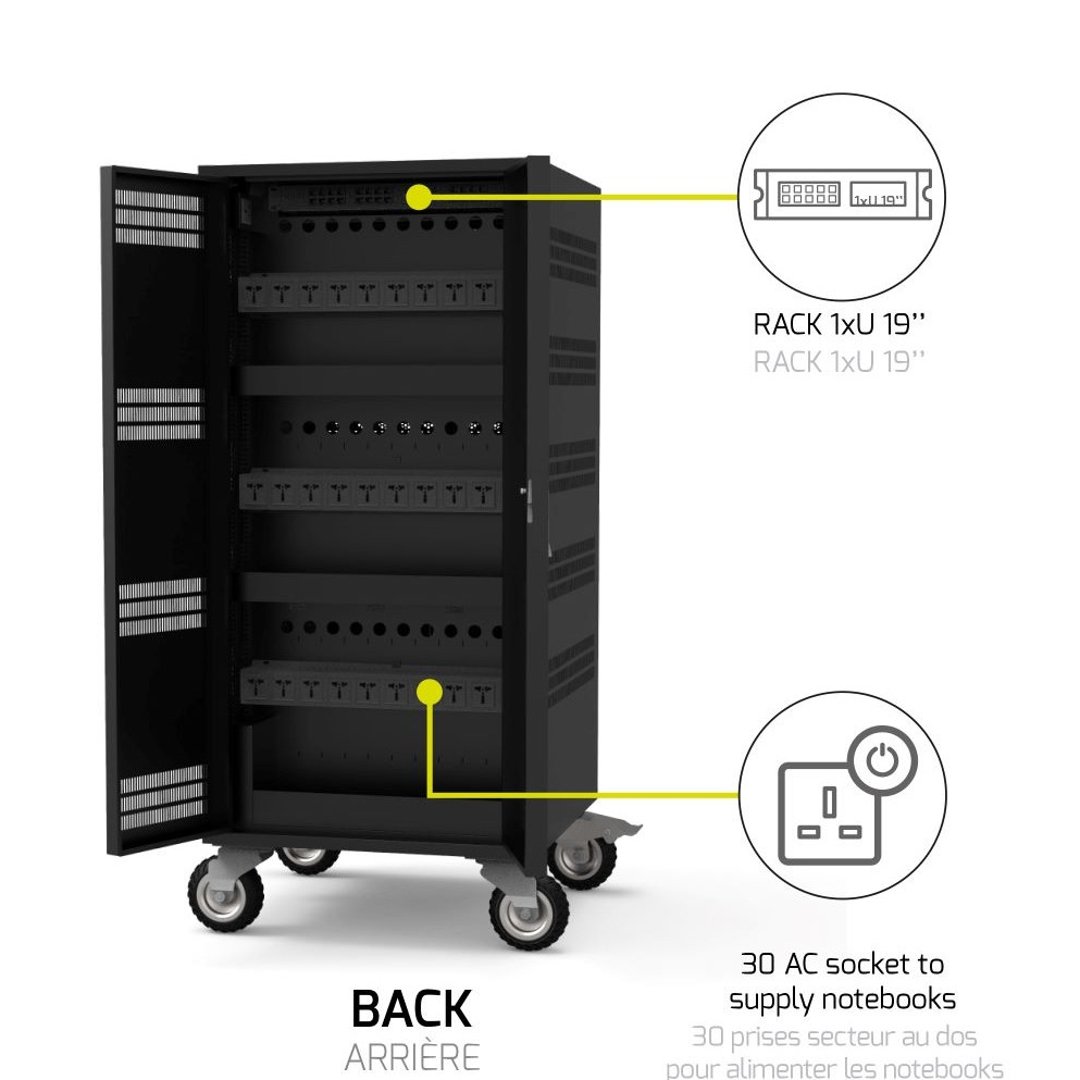 PORT зарядни шкафове >> PORT charging cabinet 30 notebooks + rack 19'' - 1 u