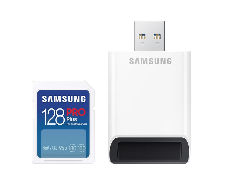 Memory, Samsung 128GB SD Card PRO Plus with USB Reader, Class10, Read 180MB/s - Write 130MB/s