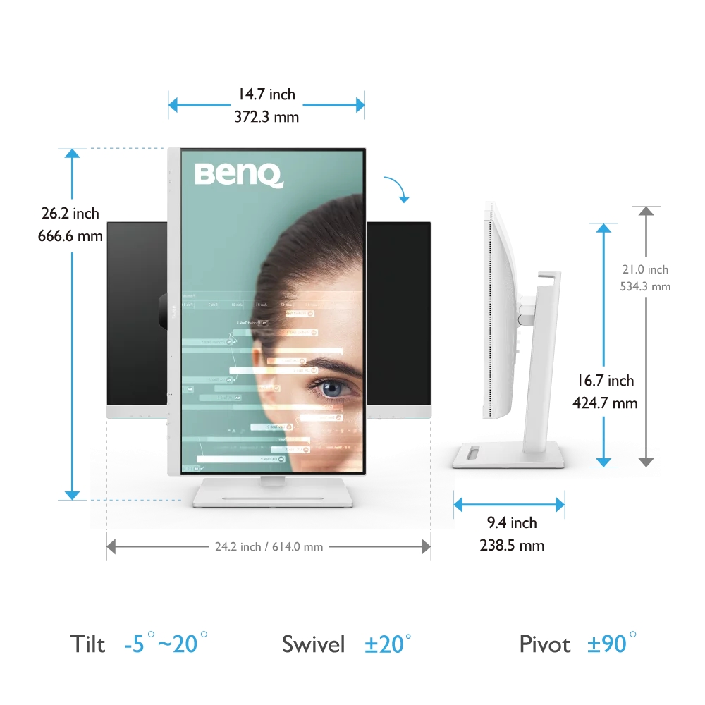 Monitor, BenQ GW2790QT 27" IPS, 5ms, QHD 2560x1440, 75Hz, 99% sRGB, Eye Reminder, Flicker-free, LBL, B.I. Gen2, ePaper, 1000:1, 20M:1 DCR, 8 bit, 350cd/m2,HDMI,DP, USB-C 60W, Daisy Chain, 3xUSB 3.2, 2Wx2, HAdj. Stand 110mm, Headph. jack, Line In,Tilt, VESA, White