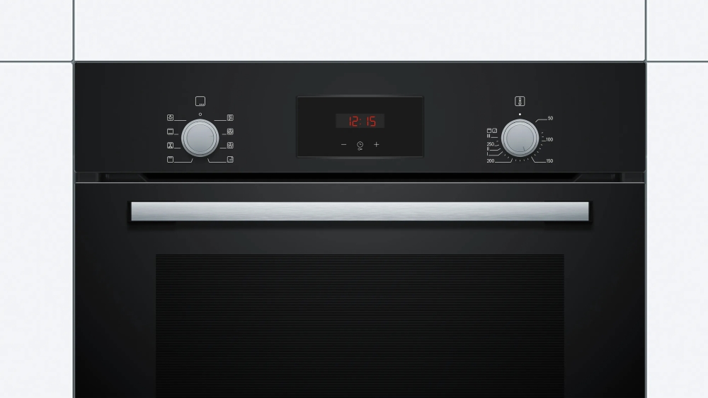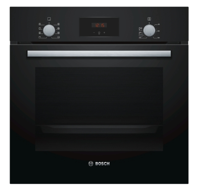 Oven, Bosch HBF153BB0, SER2, 3D HotAir, EcoClean Direct, 66 l, LED display with sinking buttons, Energy efficiency A, Black