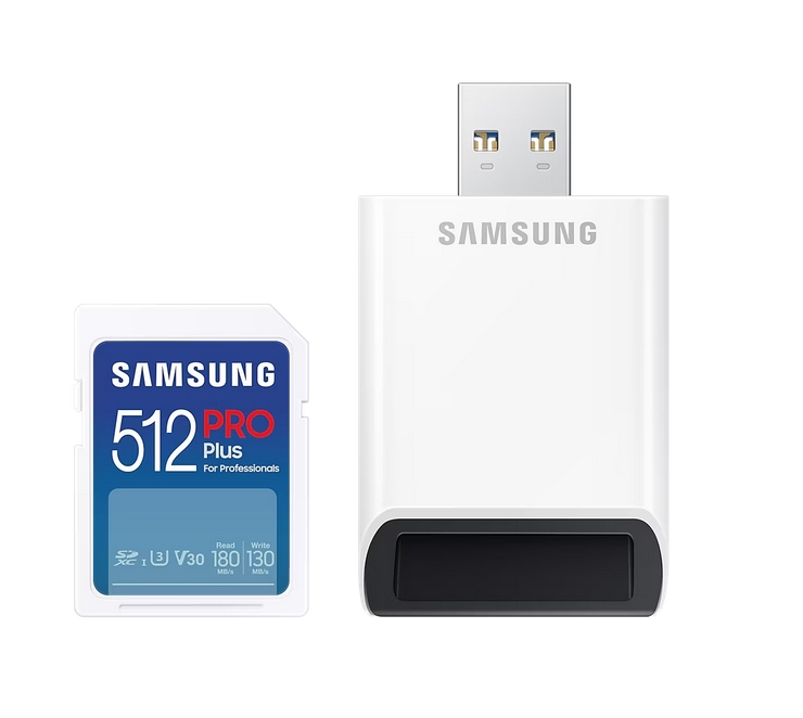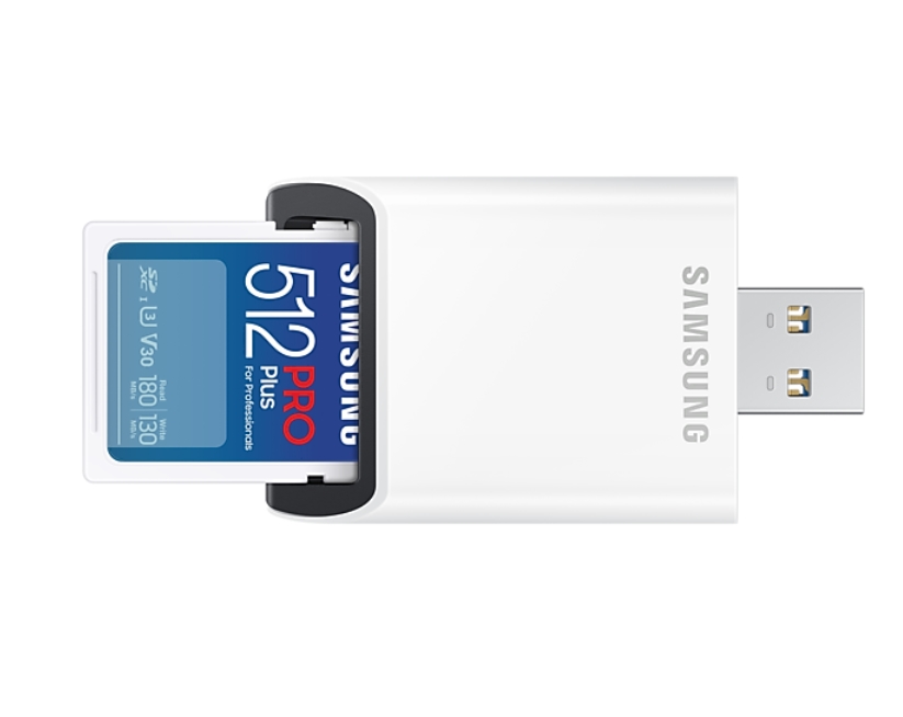 Memory, Samsung 512GB SD PRO Plus + USB Reader, Class10, Read 180MB/s - Write 130MB/s