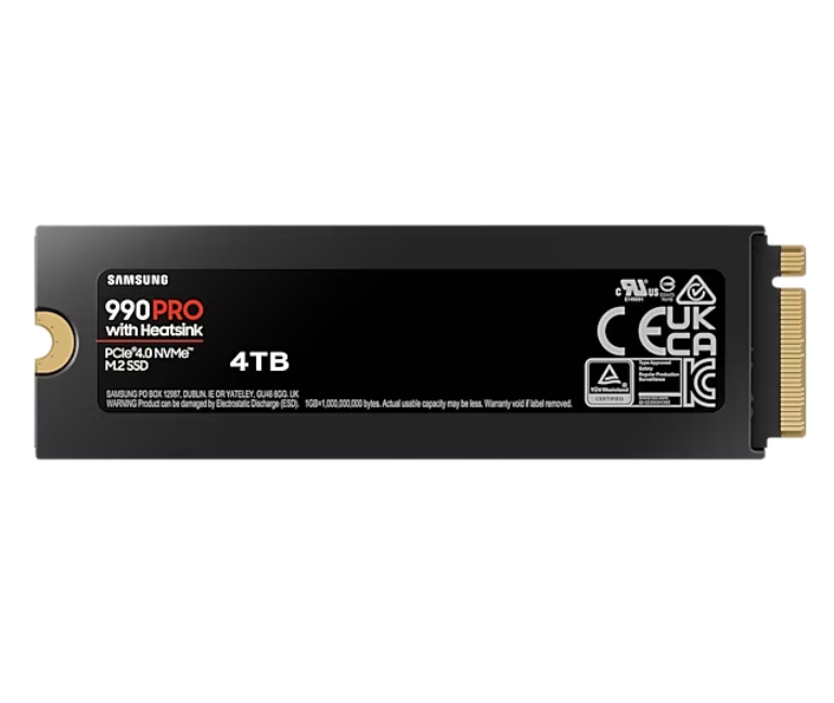 Hard Disc Drive, Samsung SSD 990 PRO 4TB Heatsink PCIe 4.0 NVMe 2.0 M.2 V-NAND 3-bit MLC, 256-bit Encryption, Read 7450 MB/s Write 6900 MB/s