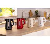 | Кана с индикатор за чаши. Вълнуващият дизайн на повърхността с матово-гланцови акценти вдъхва живот на кухнята. Ергономична работа: лесно отваряне на капака с едно докосване на бутон. Индикатор за чаша: помага да спестите енергия и време, като кипнете само необходимото количество. Филтър за варовик: лесен за почистване филтър, който предпазва напитката ви от варовик. Лесна за четене водна скала от двете страни: видимост на количеството вода от двете страни на каната – удобно за потребители с лява и дясна ръка. Тройна функция за безопасност: Автоматично изключване, защита от прегряване, защита срещу кипене и изключване при повдигане. |