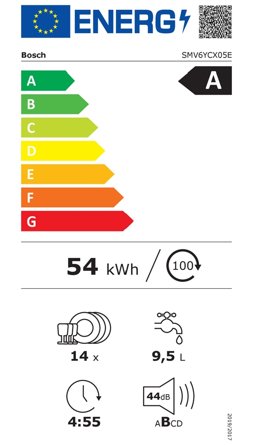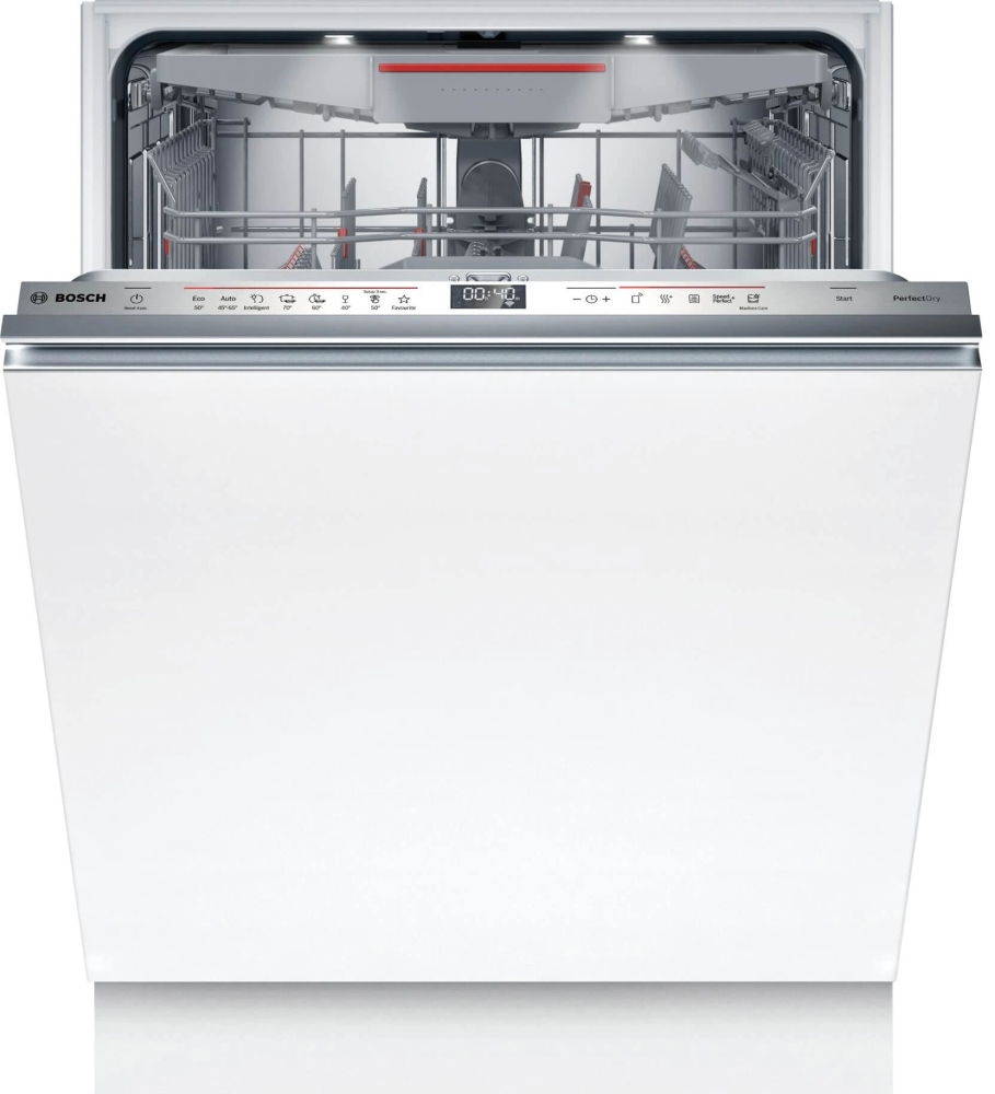 Съдомиялна, Bosch SMV6YCX05E SER6 Intelligent dishwasher fully integrated, A, Zeolith, EcoDrying, 9,5l, 14ps, 8p/5o, 44dB(B), Silence 43dB, 3rd basket, Extra Clean Zone, TimeLight, display, HC, interior light