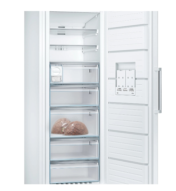 Фризер, Bosch GSN58AWDP SER6 FS upright freezer, NoFrost, D, 191/70/65cm, 366l, 38dB(C), IC, 5 drawers (1 BigBox), 3 shelfs, IceTwister, handle, white