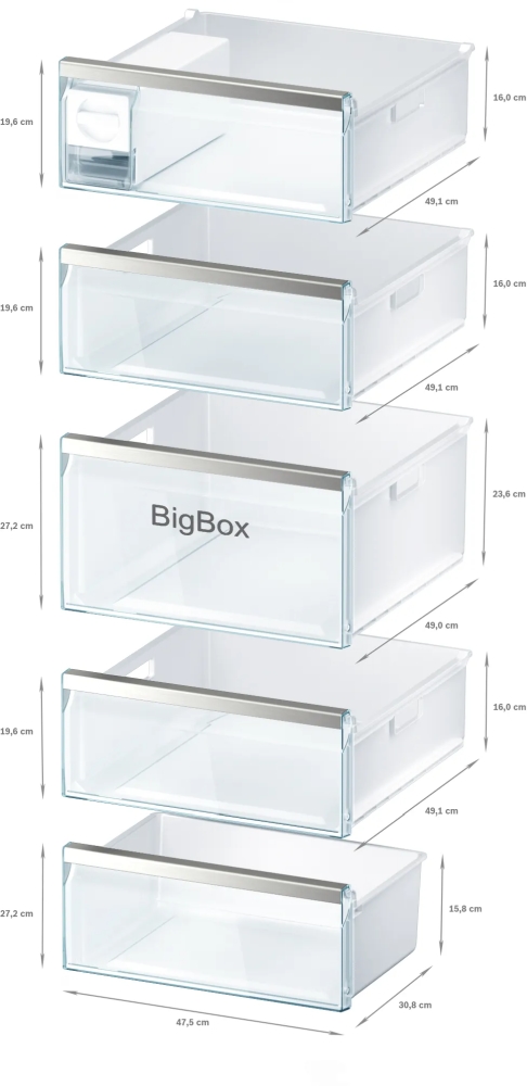 | Брой чекмеджета/кошници | 5 transparent freezer drawers (1 BigBox) |