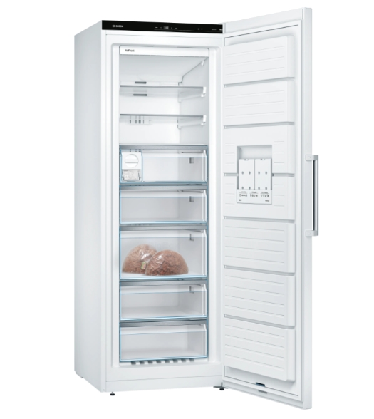 Freezer, Bosch GSN58AWDP SER6 FS upright freezer, NoFrost, D, 191/70/65cm, 366l, 38dB(C), IC, 5 drawers (1 BigBox), 3 shelfs, IceTwister, handle, white