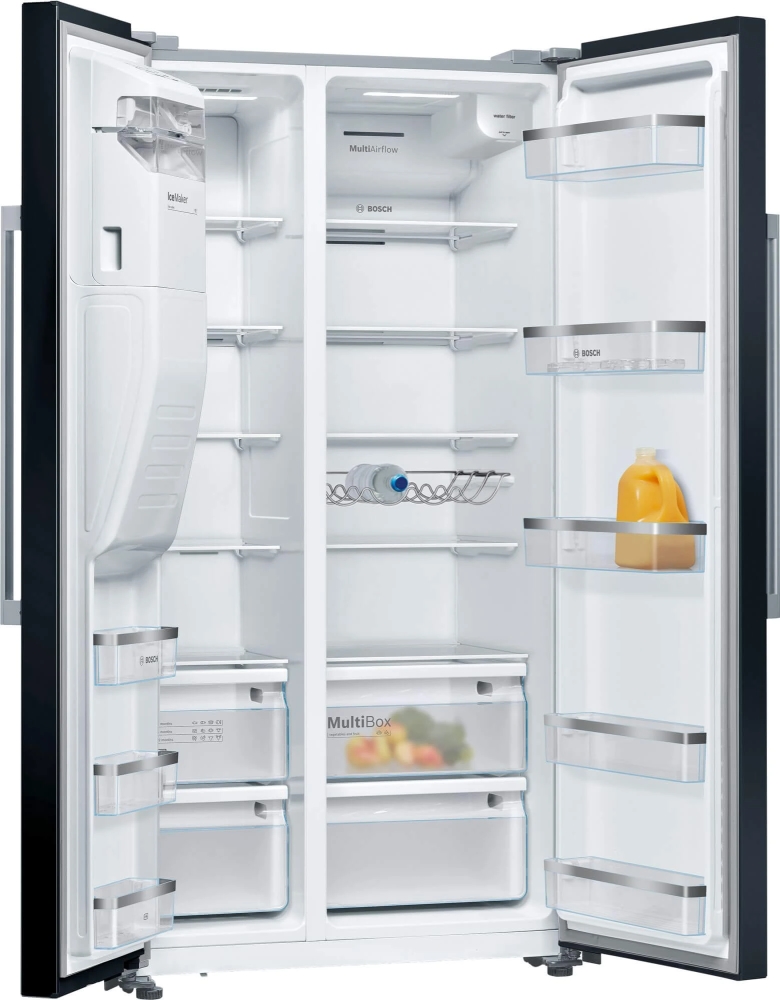 Хладилник, Bosch KAD93ABEP SER6 American SbS refrigerator, NoFrost, E, 178.7/90.8/70.7cm, 562l(371+191), 42dB, Auto dispenser and IceMaker, water connect., inv.comp., black