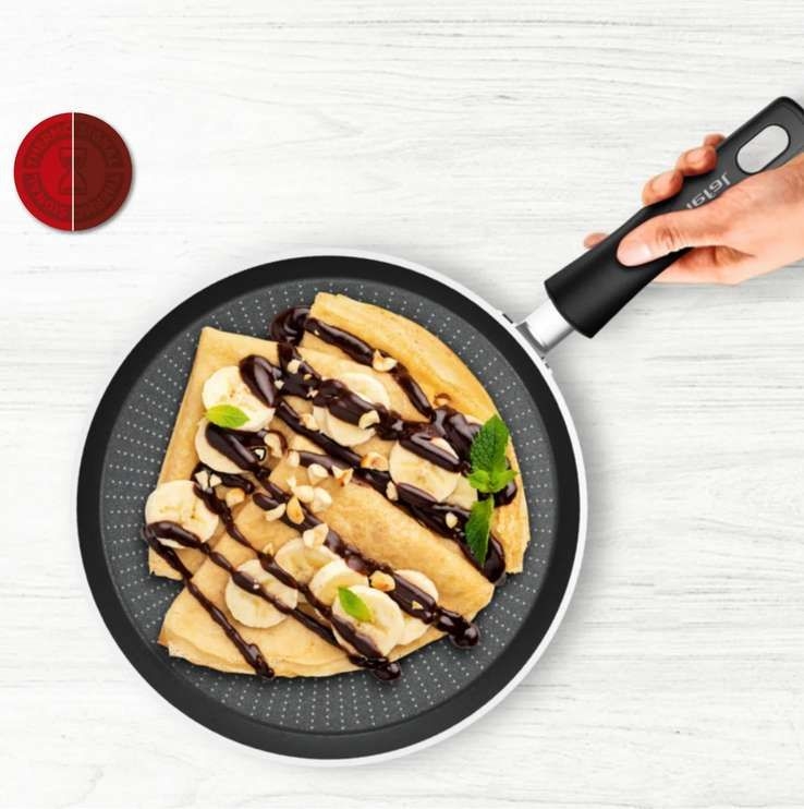 | Тиганът има основа Thermo-Fusion, която гарантира перфектна дифузия на топлината по цялата повърхност за готвене за перфектни резултати всеки път. С изключително плътни първични слоеве, проектирани да издържат на продължително ежедневно готвене, титаниевото незалепващо покритие осигурява незалепващо действие, което издържа до 2 пъти по-дълго в сравнение със стандартното незалепващо покритие на Tefal. |
