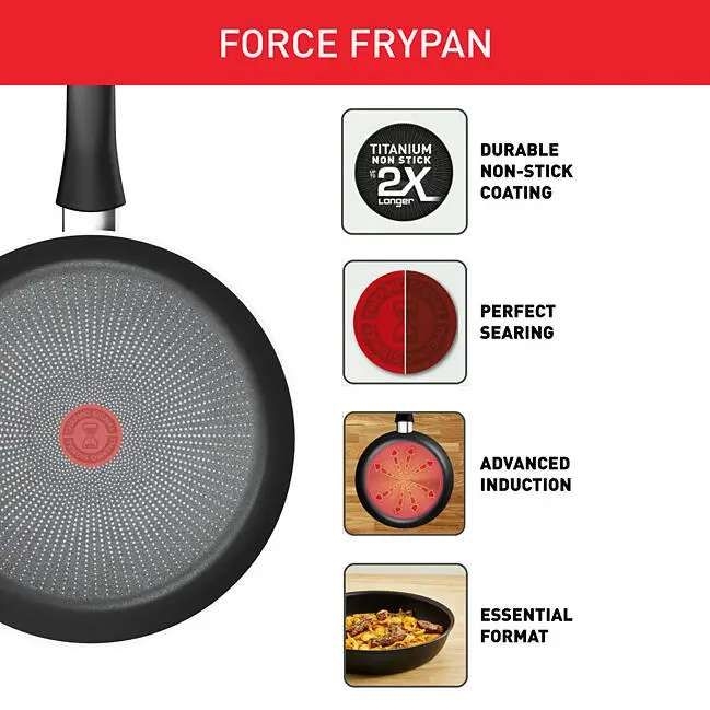 | Издръжливият тиган, който предлага лесни домашно приготвени ястия за цялото семейство ден след ден. Тиганът Force на Tefal осигурява дълготрайна производителност и лесно приготвяне на домашни ястия всеки път. С безупречно плъзгане, което издържа до два пъти по-дълго, нашето безопасно и трайно, подсилено с титан, незалепващо покритие е създадено, за да издържи дълго. Пълната гама от подобрени функции - включително характерните за Tefal функции като зоната за индикация на топлината и превъзходната индукционна технология - се съчетават с изключително издръжлив дизайн за перфектния комплект тигани. |