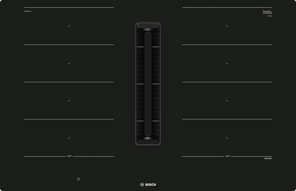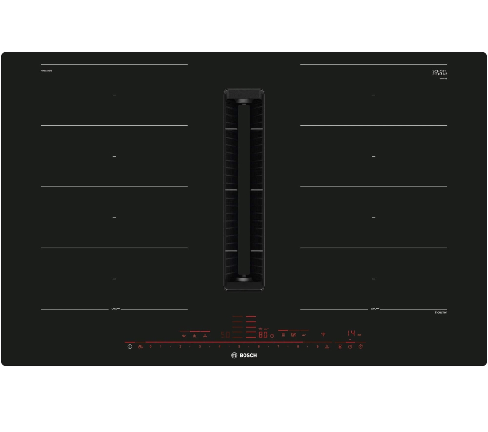 Готварски плот, Bosch PXX801D67E, SER8, Venting cooktop 80cm 2 Flex + hood B, max 622 m3/h, 69 dB, PerfectFry, PerfectCook ready, DirectSelectPremium, Pan Boost via HC, CleanAir+ filters, 7,4 kW, HC