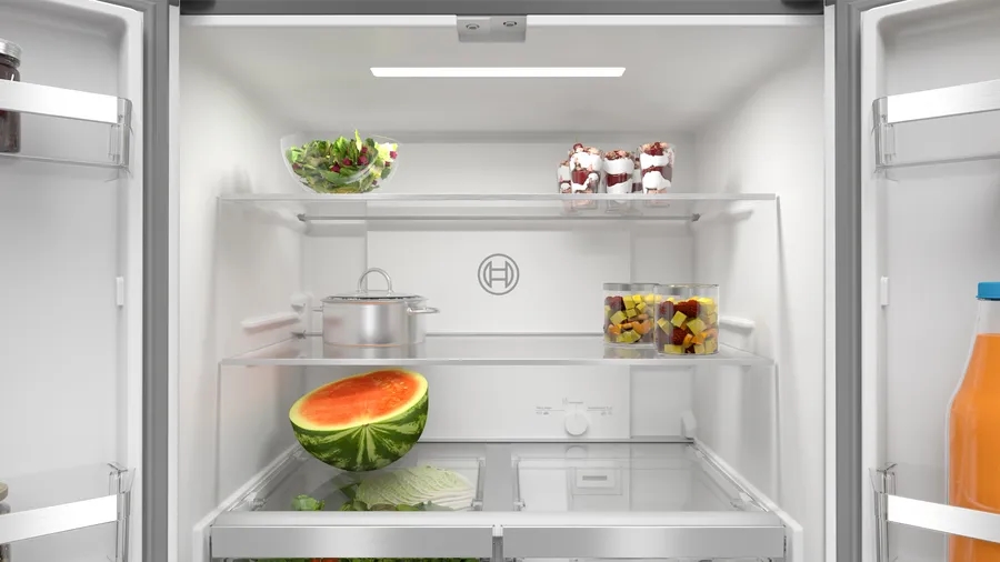 | Комбинацията хладилник с фризер с 4 врати: влезте в XXL свят на свежест с VitaFresh <0°C> XXL и XL капацитет на фризера. Кажете сбогом на главоболията от размразяването и поздравете светлата страна на охлаждането. VitaFresh запазва храната прясна по-дълго благодарение на чекмеджетата с гъвкав контрол на температурата при почти 0°C. LED осветление: осветява хладилника равномерно без блясък, през целия жизнен цикъл на уреда. Гъвкавото управление на температурата ви дава възможност да задавате отделни настройки за хладилника и за фризера. SuperCooling: по-бързо охлажда новите продукти, като по-този начин се предпазва вече охладената храна. |