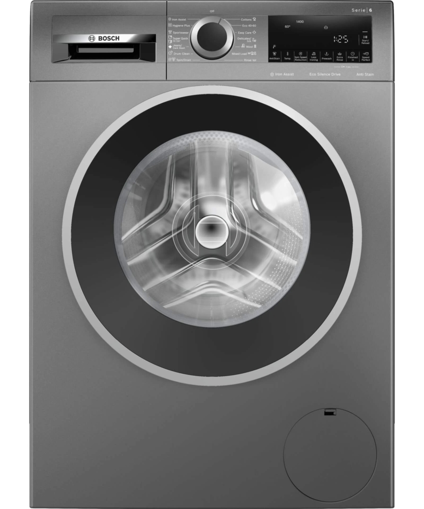 Пералня, Bosch WGG244ZREU, SER6, Washing machine 9kg, A, 1400rpm, 51/71dB(A), Iron Assist, AntiStain 4, waveDrum 65l, silver-black grey door, Cast iron grey