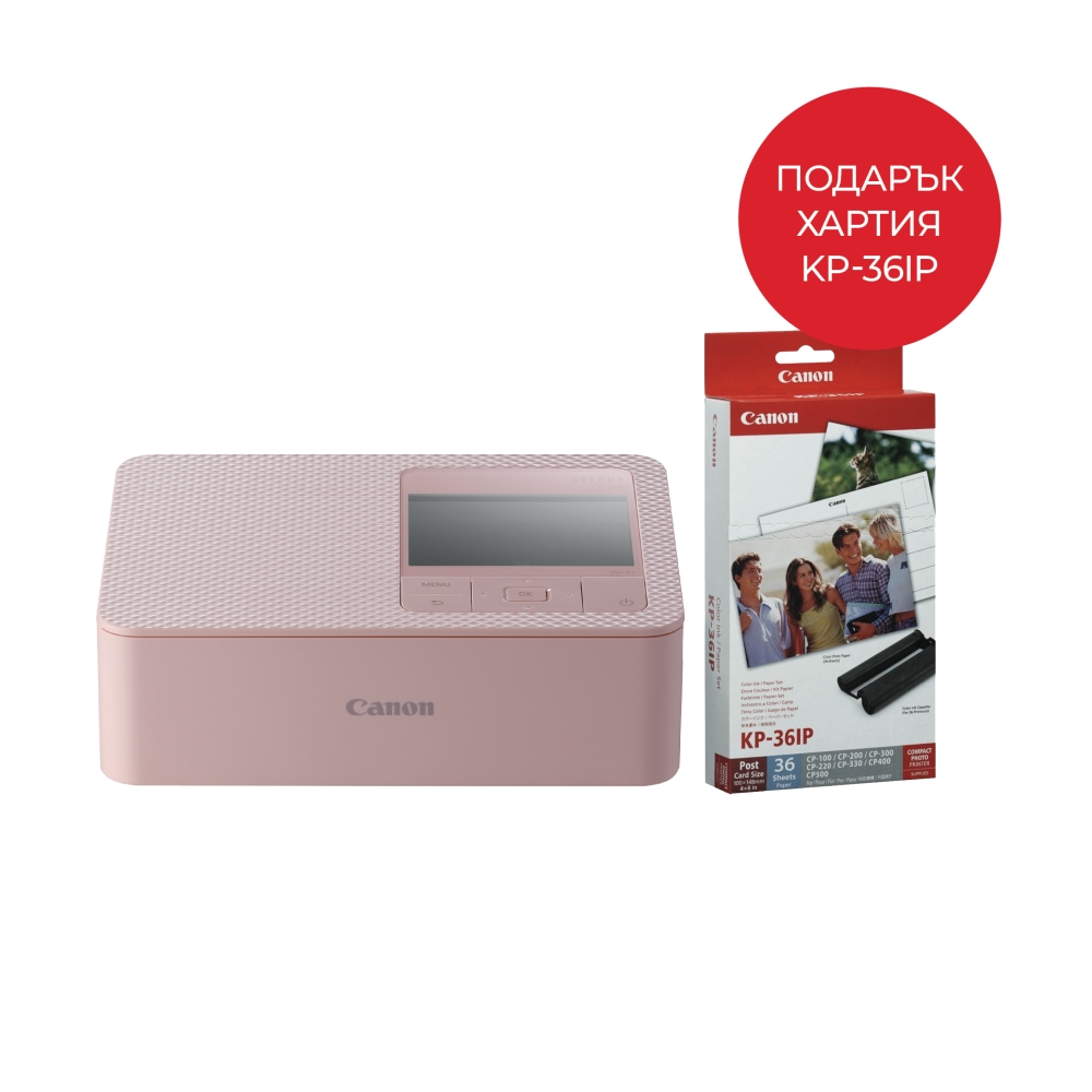 Thermal sublimation printer, Canon SELPHY CP1500, pink + Color Ink/Paper set KP-36IP (4x6"/10x15cm), 36 sheets