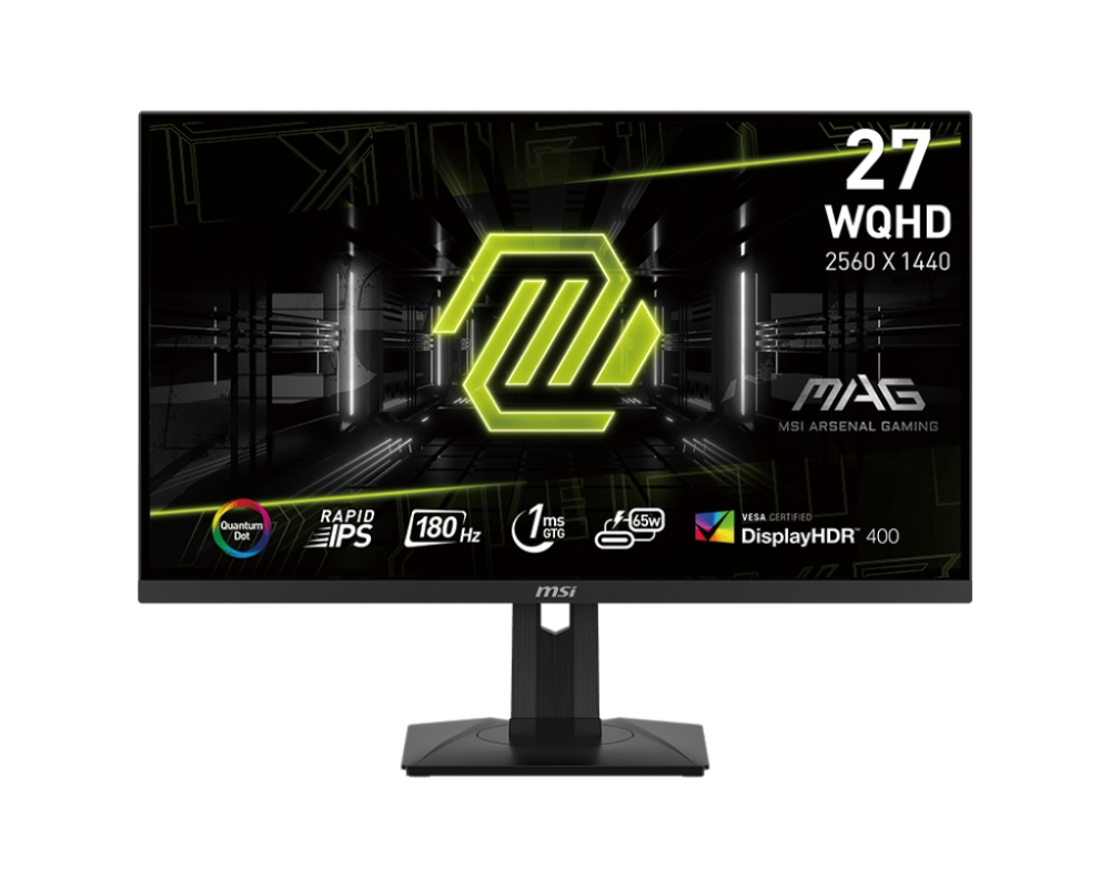 Монитор, MSI MAG 274QRF QD E2, 27", Rapid IPS, 1ms, 180Hz, Flat, WQHD 2560x1440, Quantum Dot technology, DisplayHDR 400, Mystic Light, APP, 300 nits, 2500:1, 100M:1,1x DP(1.4a), 2x HDMI (2.0b), 1x Type-C (DP alt.) wPD 65W charging, Heigh Adj. 130mm, Tilt, Vesa 75