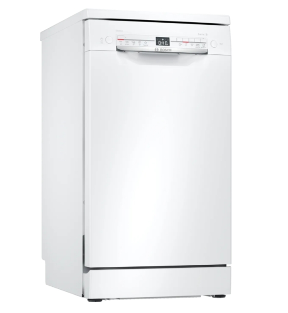 Dishwasher, Bosch SPS2IKW10E, SER2, Free-standing dishwasher 45cm, F, 9,5l, 9ps, 5p/4o, 48dB(C), display, Start delay 24h continuous, white, HC