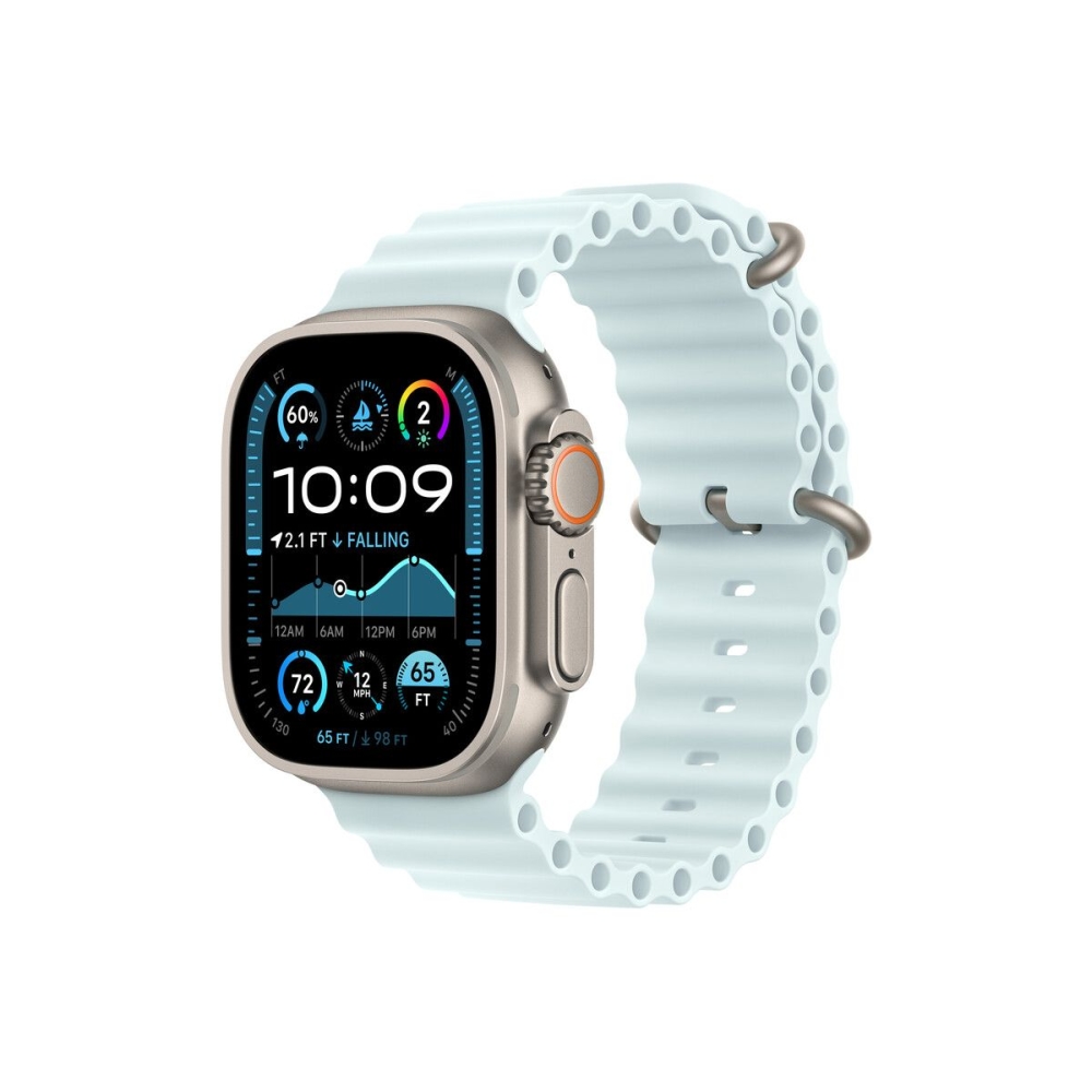 APPLE Watch >> Apple Watch 49mm Band: Ice Blue Ocean Band - Natural Titanium Finish