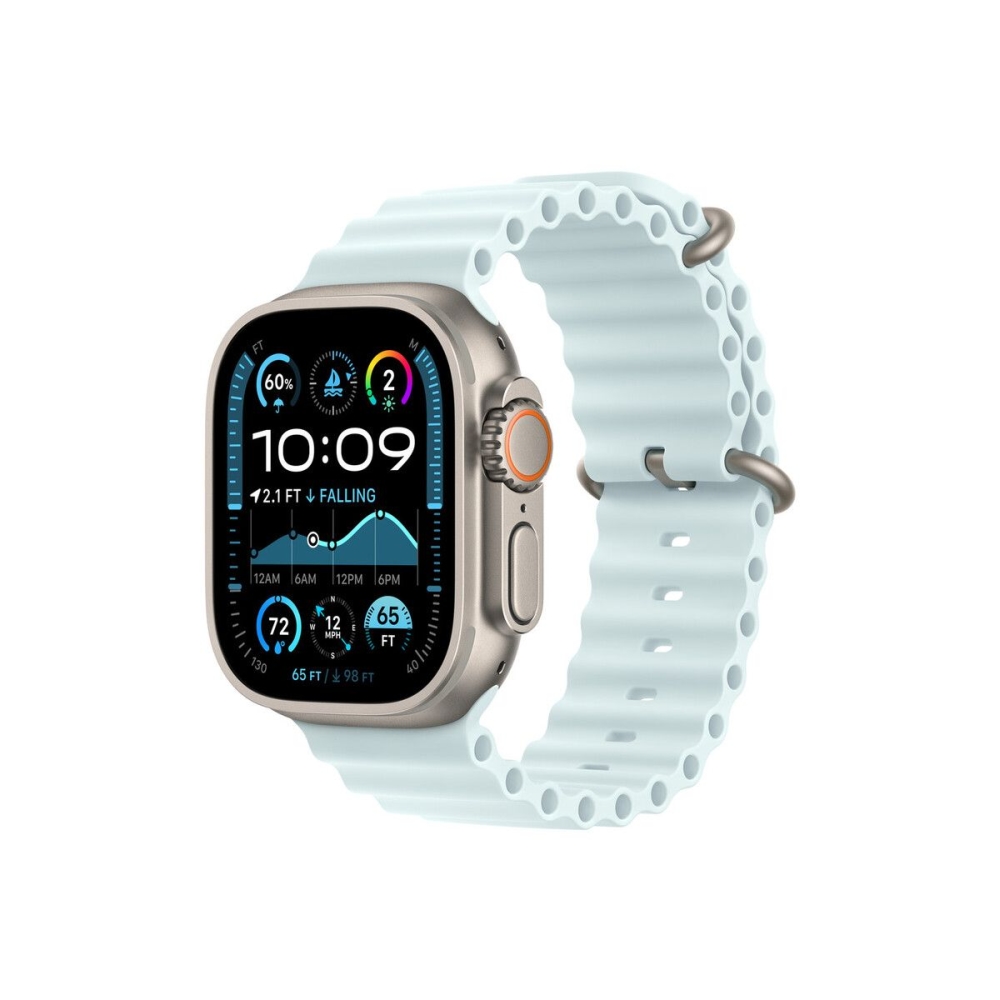APPLE Watch >> Apple Watch 49mm Band: Ice Blue Ocean Band Extension - Natural Titanium Finish