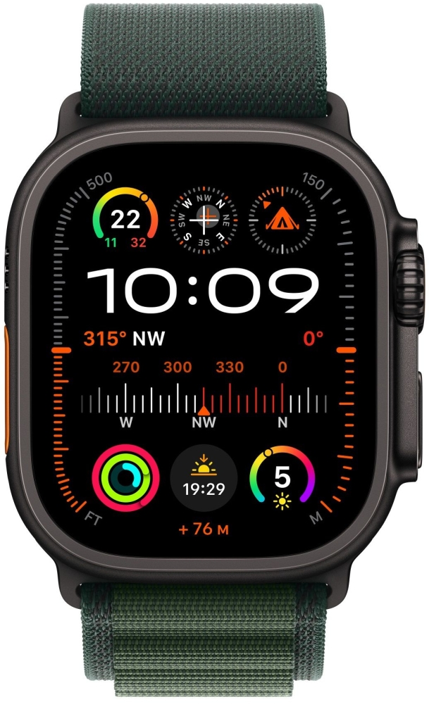 APPLE Watch >> Apple Watch 49mm Loop: Dark Green Alpine Loop - Small - Black Titanium Finish