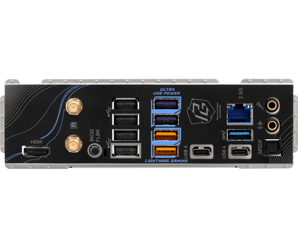 | Интерфейс | 2 x Antenna Ports, HDMI Port, 2 x USB4 Type-C Ports, 3 x USB 3.2 Gen1 Type-A Ports, 2 x USB 3.2 Gen2 Type-A Ports, 4 x USB 2.0 Ports, RJ-45 LAN Port, Line Out Jack (Gold Audio Jack), Microphone Input Jack (Gold Audio Jack) |