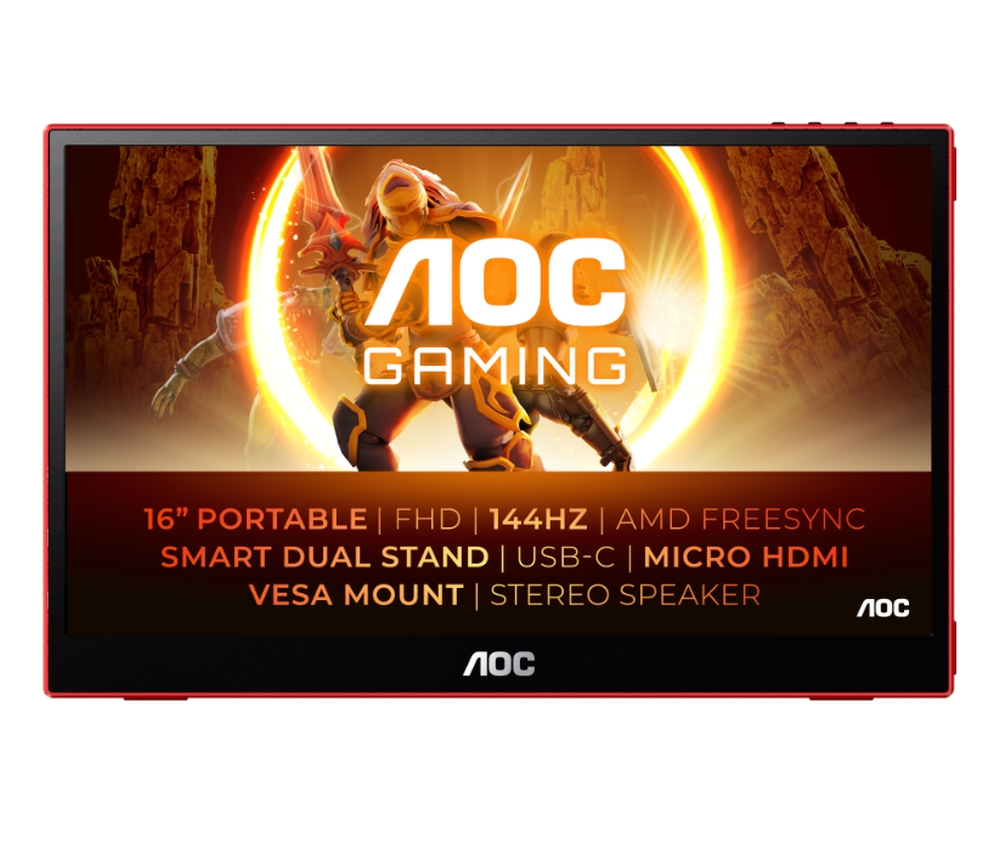 Монитор, AOC 16G3, 15.6" IPS WLED, 1920x1080@144Hz, 4ms GtG, 250cd m/2, 1000:1, 80M:1 DCR, Freesync, FlickerFree, Low Blue Light, 1Wx2, 1x MicroHDMI 1.4