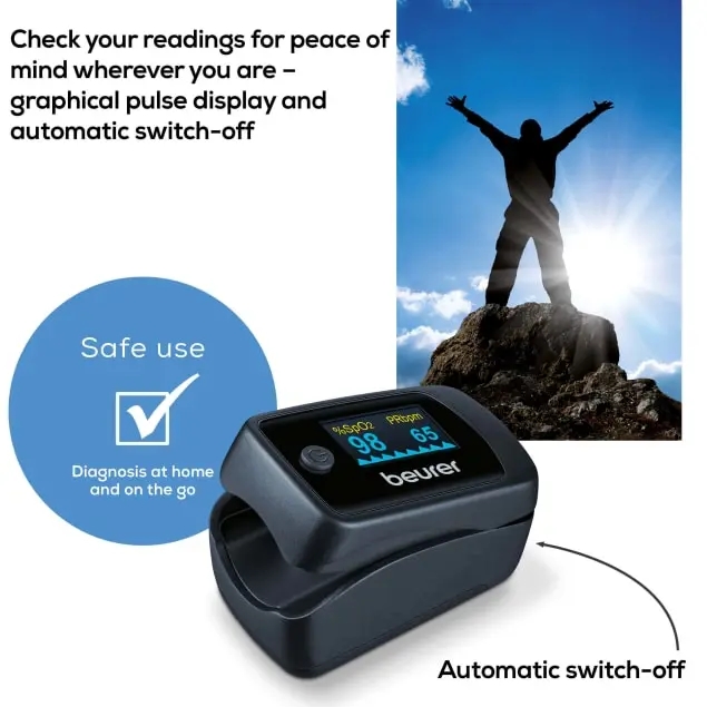 Пулсов оксиметър, Beurer PO 45 Pulse oximeter; measurement of arterial oxygen saturanion, heart rate; perfusion index;graphic pulse display; medical device