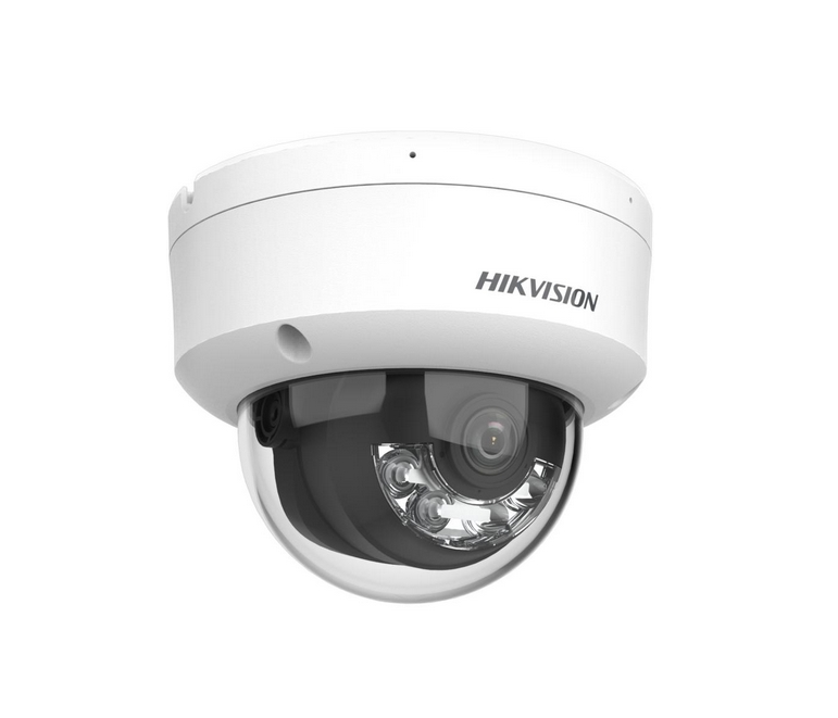 Camera, HikVision 2 MP Acusense Smart Hybrid Light Fixed Dome Network Camera, 2.8 mm, F1.6, IR, White Light up to 30m, H.265+, IP67, built-in arrayed dual-microphone, built-in memory card slot (up to 512GB), 12Vdc/PoE 8.5W