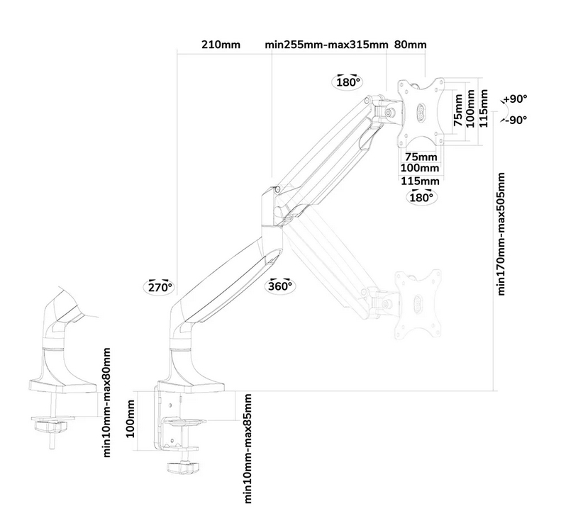 Stand, Neomounts Flat Screen Desk mount (10-32") desk clamp/grommet