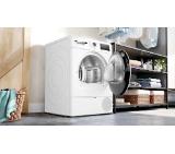 Dryer, Bosch WTH85209BY, SER4, Tumble dryer with heat pump 8kg, A++/D, 63dB EasyClean, drain set as acc. WTZ1110, white-blackgrey door