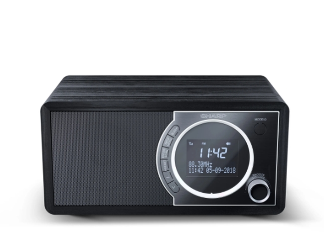 Радио, Sharp Radios DR-450(BK), DIGITAL RADIO, Bluetooth 4.2, 6W, 20 DAB+/DAB/FM, Auto time/date, LCD Display, Dual alarm with Sleep and Snooze, Dimmer function, Wooden speaker, Black